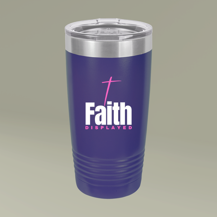 Faith Displayed Insulated Tumbler - 20oz, Travel Mug Drinkware, Pink Logo
