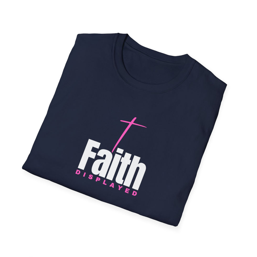 Faith Displayed T-Shirt, Unisex Spiritual Tee, Religious Apparel, Pink Logo